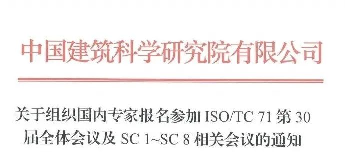 為促進國內專家積極參與混凝土領域的國際標準化工作,中國建筑科學研究院有限公司(以下簡稱“中國建研院”)作為國內技術對口單位,負責組織國內有關單位及專家報名參加ISO/TC 71第30屆全體會議及SC 1~SC 8相關會議。