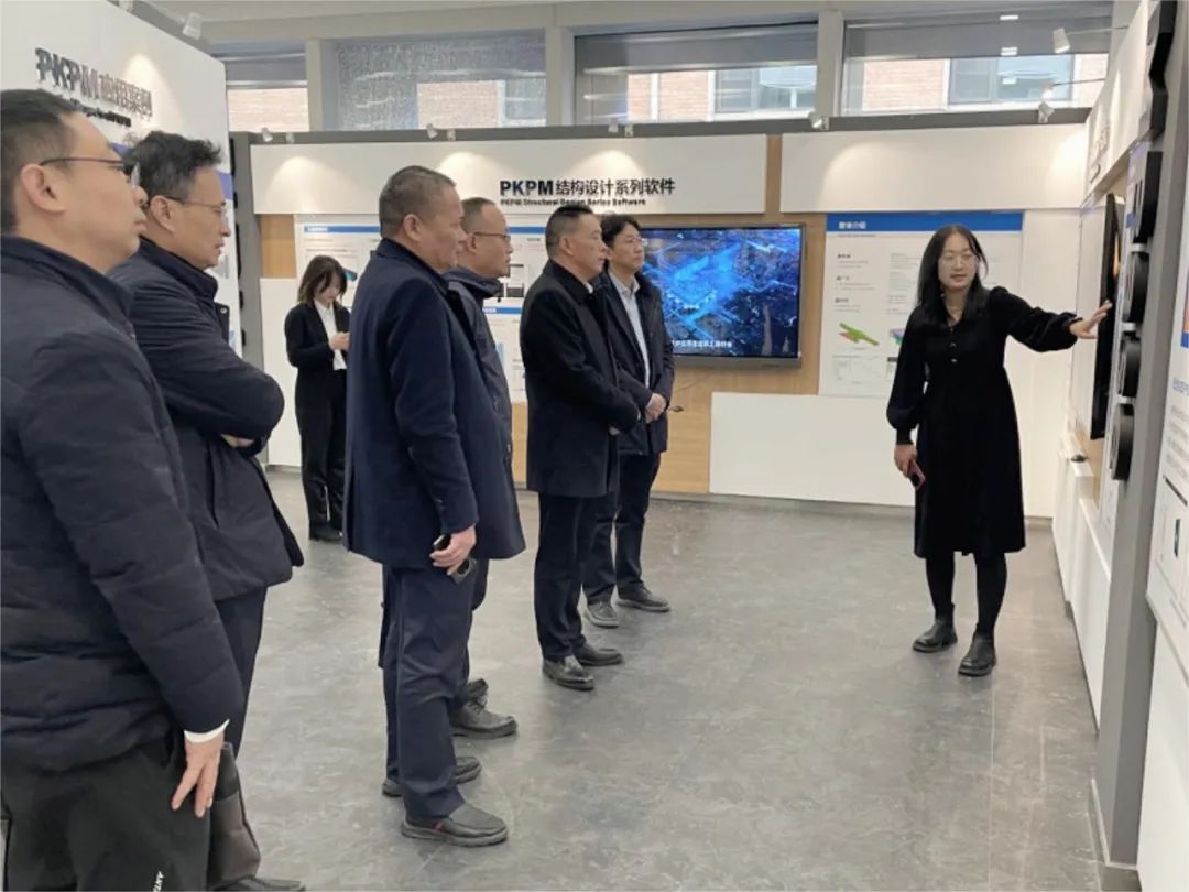 會前,梁超一行參觀了中國建研院展廳、中建研科技數字科技展廳,了解了中國建研院的歷史與發展,以及中建研科技在國產自主軟件開發、關鍵核心技術攻關及最新BIM應用方面的研究成果。