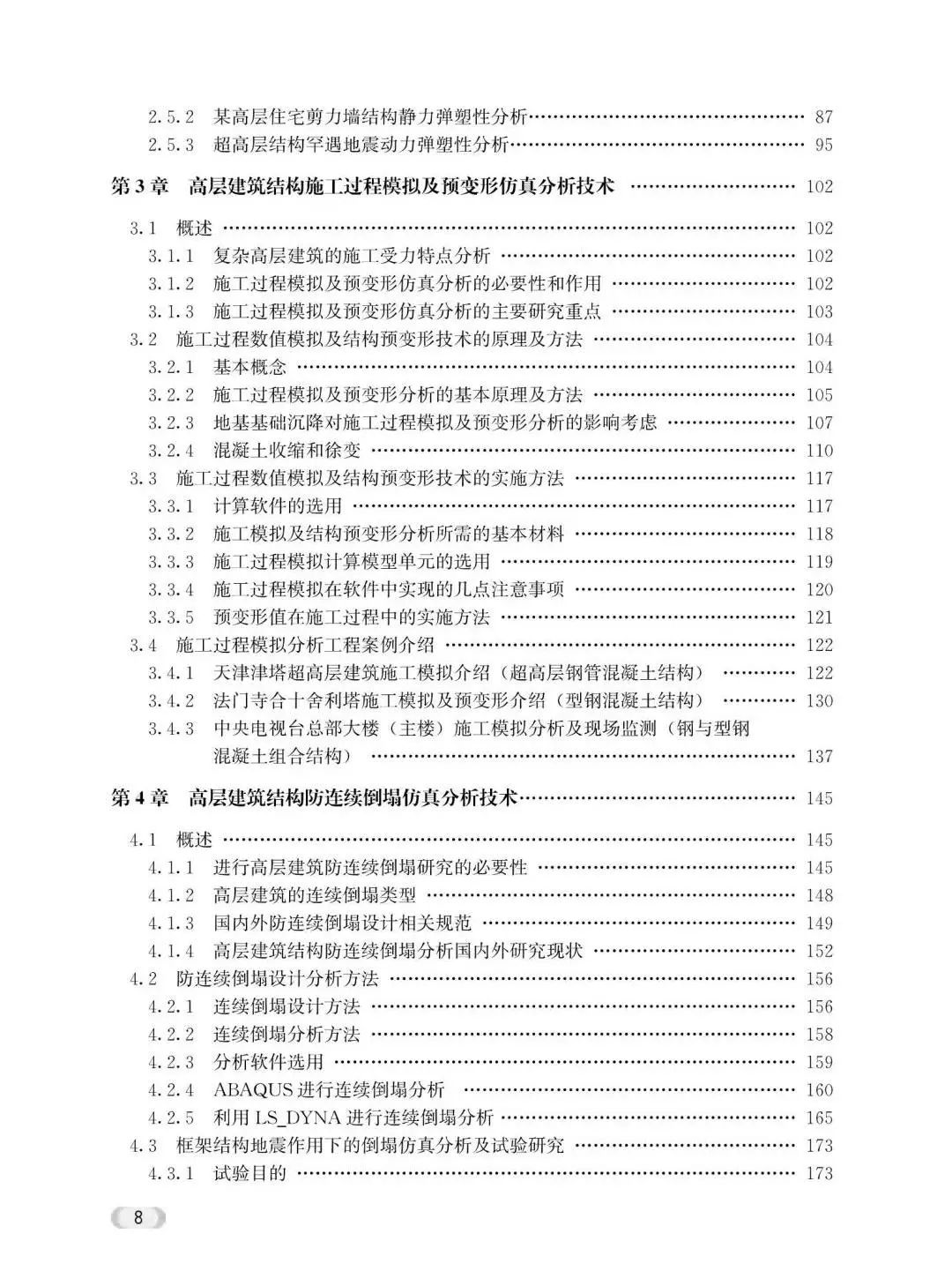 全書共分為8章,包括:高層建筑結(jié)構(gòu)抗震性能靜動(dòng)力彈塑性仿真分析技術(shù)、施工過(guò)程模擬及預(yù)變形仿真分析技術(shù)、抗連續(xù)倒塌仿真分析技術(shù)、減隔震仿真分析技術(shù)、風(fēng)工程仿真分析技術(shù)、性能試驗(yàn)仿真技術(shù)以及性能化設(shè)計(jì)方法與仿真分析等,形成了完善的高層建筑結(jié)構(gòu)仿真分析技術(shù)體系。本書可供從事高層建筑設(shè)計(jì)與科研人員學(xué)習(xí)使用。