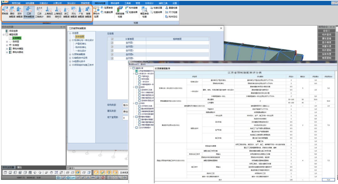 項目成果PKPM-PC提供了多種契合規范的智能化設計手段和輔助工具,基于PKPM-BIM平臺實現了裝配式結構分析、構件拆分與預拼裝、 國標及多地裝配率計算、構件安全驗算、構件深化設計與碰撞檢查、自動出圖、自動統計清單、生產數據導出等。經廣大用戶驗證,PKPM-PC可滿足裝配式結構計算、方案設計和深化設計的不同需要。