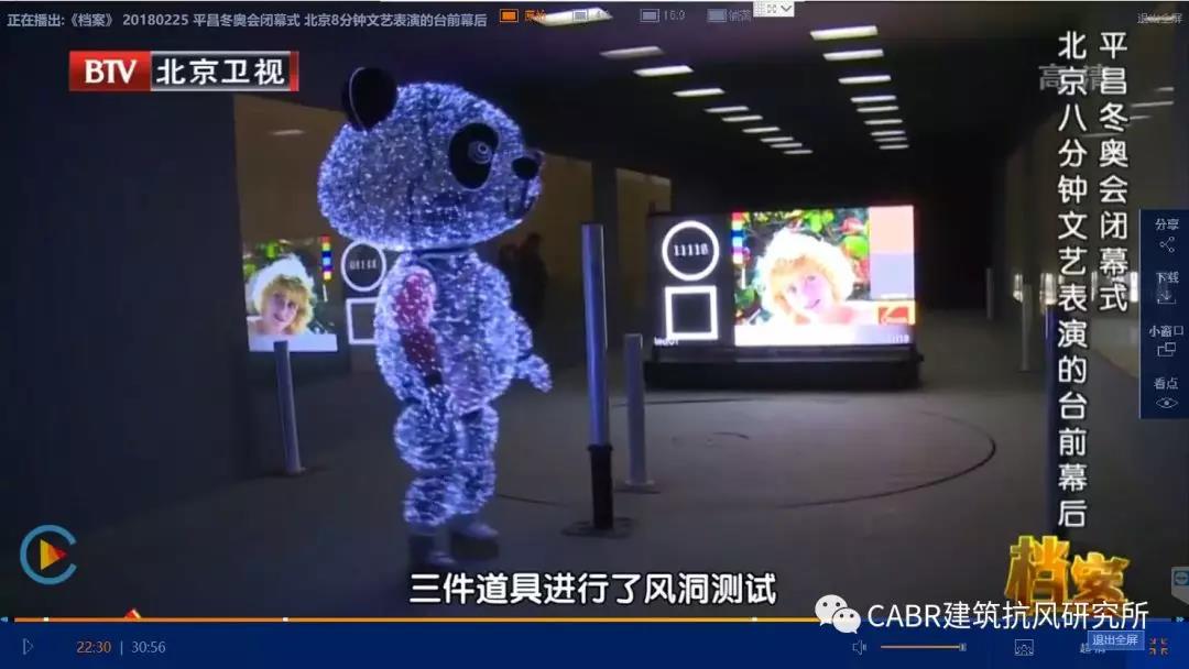 在2018年2月25日平昌冬奧會(huì)閉幕式上,人工智能“冰屏”不斷變幻,輪滑演員曼妙舞姿,配合炫彩繽紛的地面投影,“北京8分鐘”驚艷世界。“科技奧運(yùn)”完美呈現(xiàn)的背后,是科研團(tuán)隊(duì)的全心努力,針對(duì)強(qiáng)風(fēng)、低溫、強(qiáng)磁干擾等各種不利條件開展了大量研究工作。其中中國建筑科學(xué)研究院建筑抗風(fēng)研究所承擔(dān)了“冰屏”的抗風(fēng)性能試驗(yàn)和“熊貓”的風(fēng)中滑行測(cè)試。
