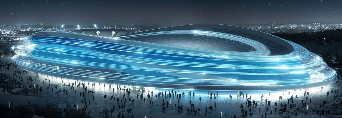 國家速滑館,它有一個(gè)晶瑩美麗的昵稱 — “冰絲帶”。由象征著2022年的22條“冰絲帶”交織成繭,新一代的奧運(yùn)之星從此破繭而出。“冰絲帶”的建筑立面線條流暢、造型富有動(dòng)感,像速滑運(yùn)動(dòng)員在冰面上高速滑動(dòng),留下的一圈圈風(fēng)馳電掣的軌跡,體現(xiàn)了冰上運(yùn)動(dòng)的速度和激情!