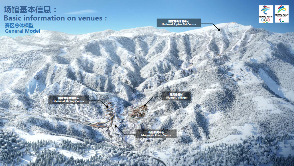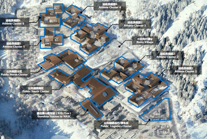 延慶冬奧村位于延慶賽區(qū)核心區(qū)南區(qū)東部,緊鄰賽區(qū)安檢廣場(chǎng)和山下纜車站,地處海坨山腳下是一塊相對(duì)平緩的臺(tái)階式坡地。