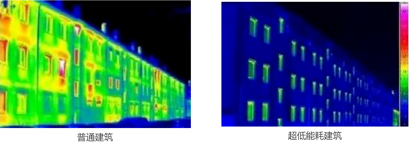 上圖為普通建筑與超低能耗建筑在紅外線狀態(tài)下熱成像對(duì)比,通過幕墻團(tuán)隊(duì)不斷的方案比選,最終實(shí)現(xiàn)了科技與自然的和諧共生。