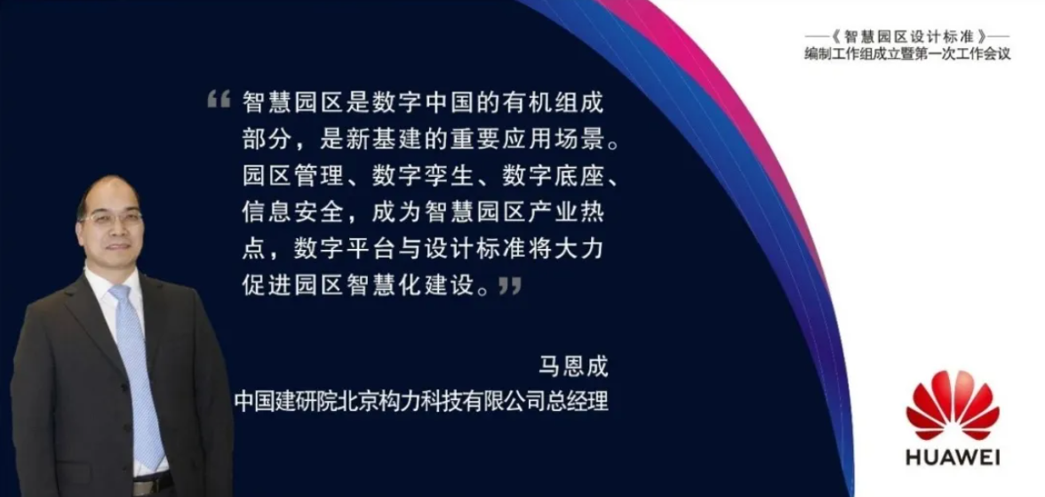 會上,北京構(gòu)力科技有限公司馬恩成總經(jīng)理、華為智慧園區(qū)業(yè)務部總裁蘇寶華博士分別代表主編單位進行了主題報告;在《智慧園區(qū)產(chǎn)業(yè)熱點介紹》中,馬恩成總經(jīng)理從園區(qū)管理智慧化支撐及智慧園區(qū)促進建筑業(yè)數(shù)字化轉(zhuǎn)型的角度介紹了智慧園區(qū)的產(chǎn)業(yè)熱點,指出智慧園區(qū)未來發(fā)展對于“數(shù)字平臺”和“設計標準”的需求,介紹了華為與構(gòu)力為建筑行業(yè)共同打造的集5G、云、AI、BIM等新信息技術(shù)的BIM使能平臺,通過“標準+平臺+生態(tài)”的形式,為智慧園區(qū)的未來發(fā)展打造一個繁榮的開發(fā)者生態(tài),為數(shù)字中國奠定基礎。