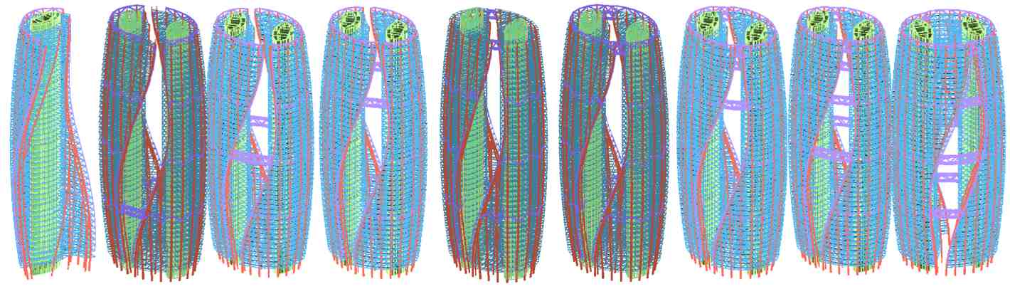 優(yōu)美獨(dú)特的扭轉(zhuǎn)建筑造型為結(jié)構(gòu)設(shè)計(jì)帶來(lái)巨大挑戰(zhàn)。為解決工程中的若干重點(diǎn)和難點(diǎn)問(wèn)題,業(yè)主委托我公司工程咨詢?cè)O(shè)計(jì)院完成了一系列研究和咨詢工作。