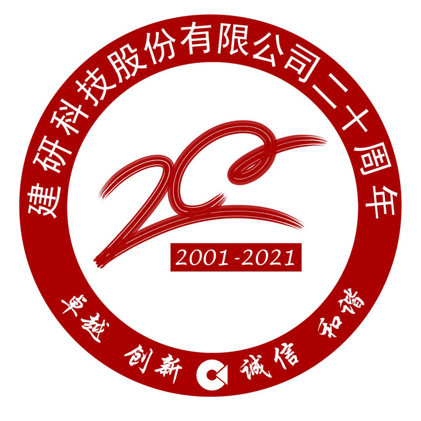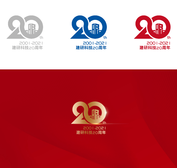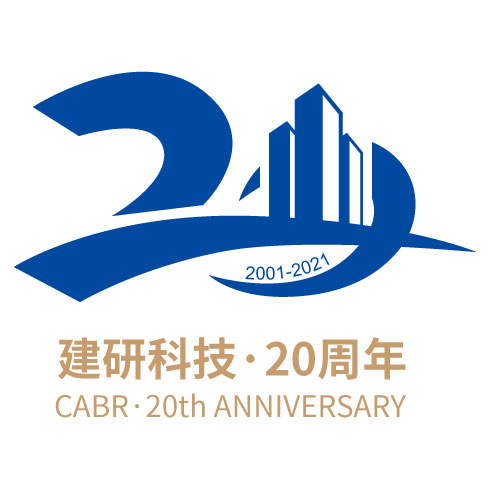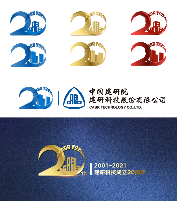 以數字20為主要創意元素,以圓形和線段按比例分割,圓形上部位置用建研科技英文縮寫展開放大環繞,象征建研科技20年蓬勃向上發展,2與0用環環相扣的方式關聯,展現公司全產業鏈的經營模式,各個業務環環相扣,全過程的工作形式,圓形中間可以放置公司大樓外部形象或cabr,logo分別做出平面及立體光感造型。