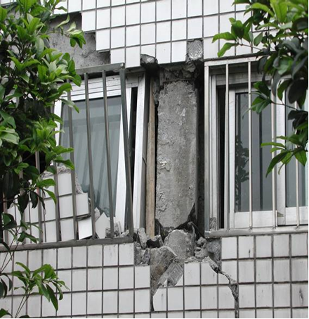 圖7??汶川地震,都江堰某三層框架結構,填充墻不合理砌筑導致短柱破壞