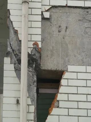 圖5 ?2008汶川地震,安縣某辦公樓,填充墻不當布置導致扭轉破壞