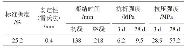 (1)水泥:P·Ⅰ42.5,比表面積 349 ㎡/kg,密度 3.15g/cm3,細度(80 μm 篩篩余)為 0.9%。