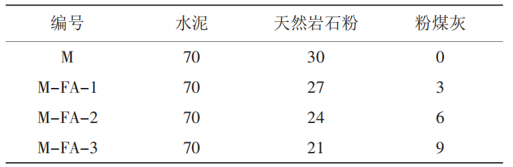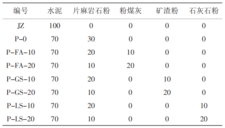 麻巖石粉與其它摻合料種類試驗方案(%)