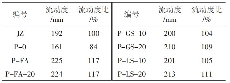 流動度比和活性指數參考 GB/T 2419—2005《水泥膠砂流動度測定方法》和 GB/T 17671—1999《水泥膠砂強度檢驗方法(ISO 法)》進行測試。