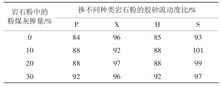 不同巖石粉與粉煤灰復合對水泥膠砂流動性的影響