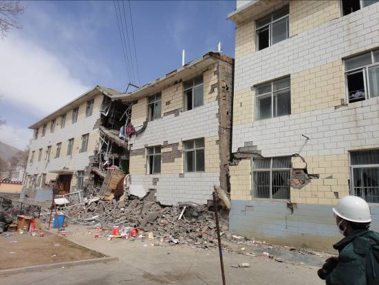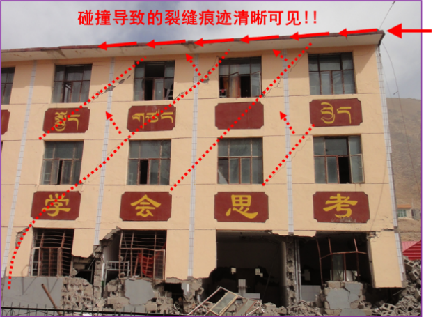 圖4 ?2010年玉樹地震,玉樹州綜合職業(yè)技術學校兩棟學生公寓樓的碰撞破壞情況