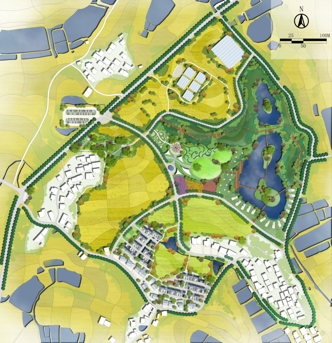 統(tǒng)籌推進新村建設和舊村更新,理清產業(yè)發(fā)展重點,梳理水系和道路,強化“湖·田·林·塘·居”的空間形態(tài),形成“一心、三環(huán)、多區(qū)”的空間結構。同時結合村莊特色的水產養(yǎng)殖、果樹、水稻種植等產業(yè),配套研學功能,打造以“漁樵耕讀”為主題的露營基地,推動農文旅融合發(fā)展。積極構建功能復合、產業(yè)升級的和美鄉(xiāng)村。