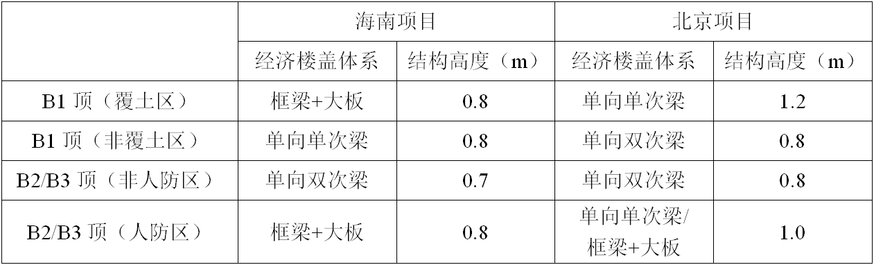 地下室樓蓋方案原則上考慮三種方案布置:主梁大板、單向單次梁、單向雙次梁。其中,地下室頂板增加考慮十字梁方案。