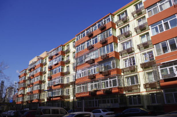 農業部惠新西街甲15號院綜合整治項目位于北京市朝陽區惠新西街,本項目的主要為建筑節能改造,增設外墻保溫及屋面保溫,外墻重新粉刷涂料,更換外門窗;更換帶可視對講門禁的單元門,更換樓道內原有破損疏散指示牌及應急指示燈,建筑內部公共部位粉刷見新,,所有梯段靠墻部位增加無障礙扶手,室外臺階修復、更換雨水管,空調室外機統一規劃安裝,室內外線纜規整歸槽。室外透水路面磚、花池綠化新做。惠新西街甲15號院的兩棟建筑主體均采用淡黃色為主色調,陽臺搭配以明快的磚紅色,使整棟建筑看起來清新自然,在藍天的映襯下顯現現出溫馨,明亮的視覺效果。