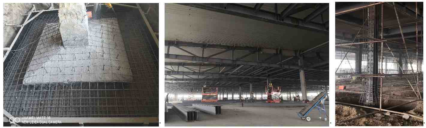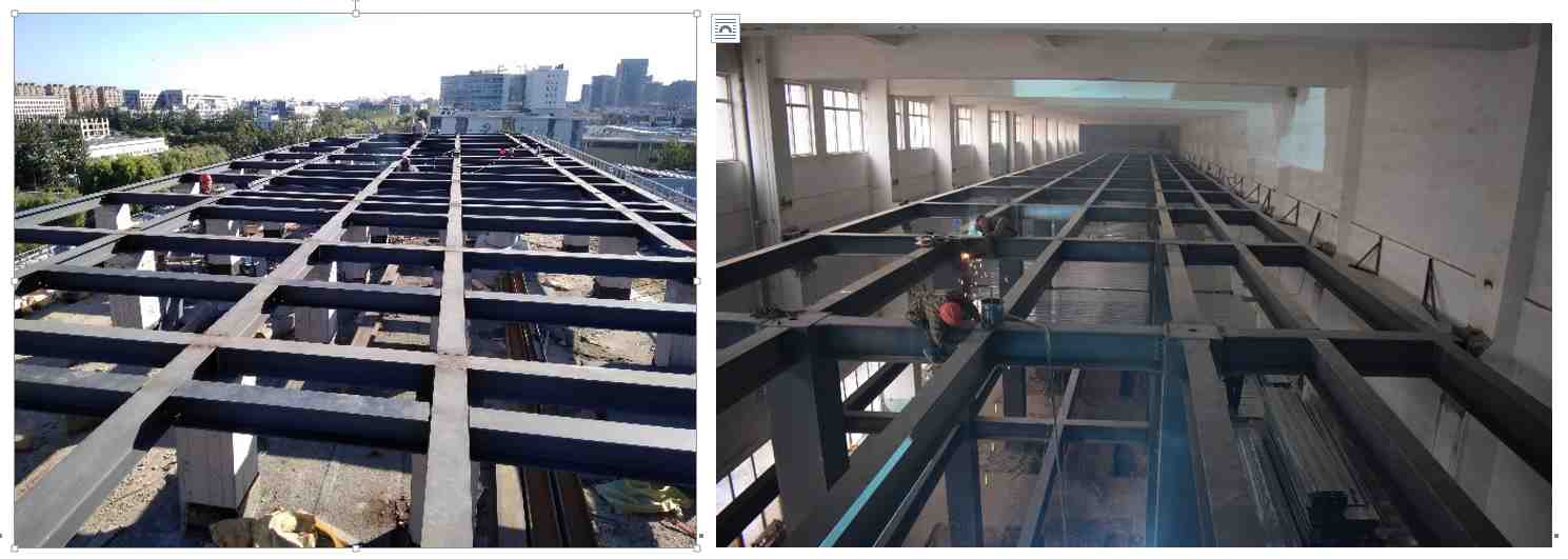 加固改造施工。建筑功能由鋼結構廠房加固改為數據中心;主要加固形式為鋼結構加固、基礎加大截面加固等,總加固面積23000
