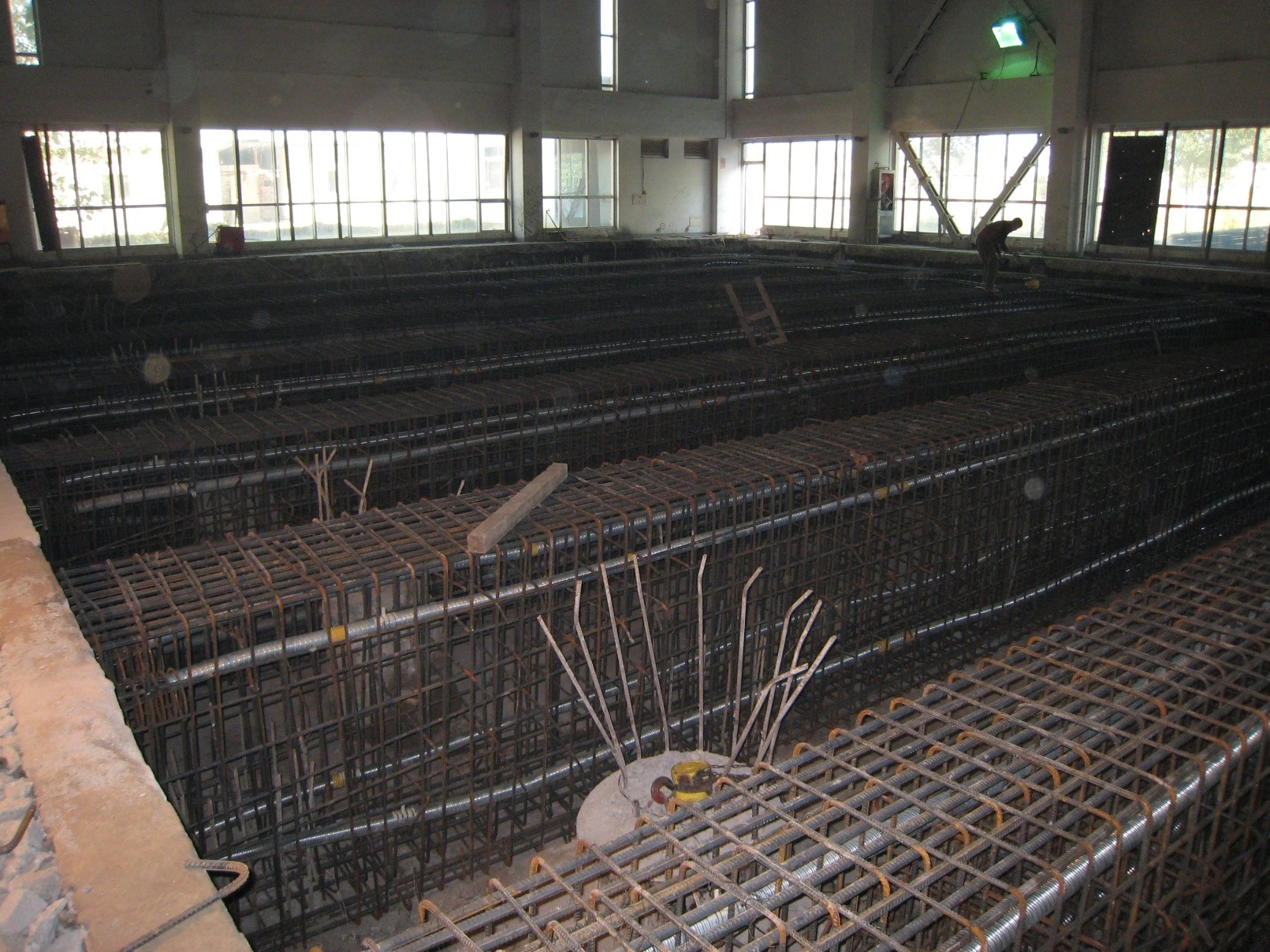 預應力施工。反力墻結構,L型平面,25m×12m,高15m。